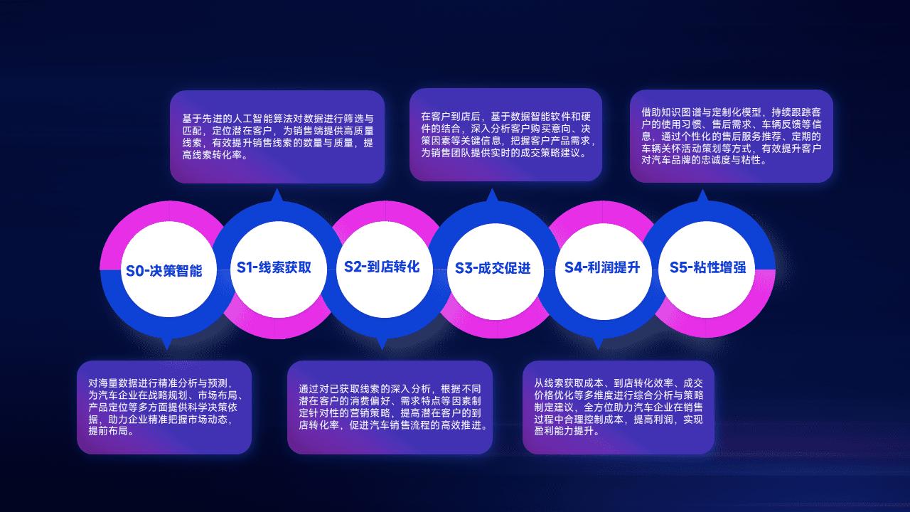 通过拓宽潜在客户来源、、优化线索分配并提高到店转化率,,,,以增强销售效率。。。同时,,,,利用线索数据不断优化分析模型,,有效提升转化率,,,扩大营销影响力。。。